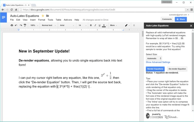 OK, cette extension n’est pas particulièrement amusante (pas d’arc-en-ciel) mais elle est vraiment puissante et utile pour les personnes qui font des travaux scientifiques, mathématiques ou d’ingénierie dans Google Docs.