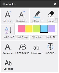 DocTools est un module complémentaire gratuit pour Docs qui ajoute plus d’une douzaine de fonctions de texte utiles à vos documents. DocTools vous permet de changer la casse, d’ajuster la taille des polices, de convertir les chiffres en mots équivalents et vice-versa, d’ajouter et de supprimer le surlignage, et bien plus encore, en un seul clic.