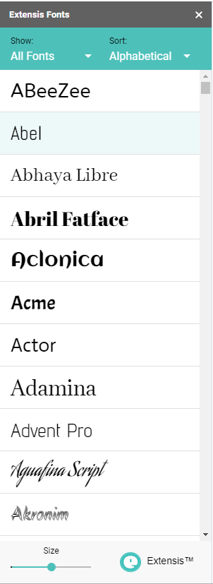 Heureusement, il existe une solution à ces problèmes. Le module complémentaire Extensis Fonts pour Docs résout ces deux problèmes en plaçant toutes vos polices dans un menu facile d’accès et en effectuant une mise à jour automatique dès qu’une nouvelle police est ajoutée à la bibliothèque Google Fonts.