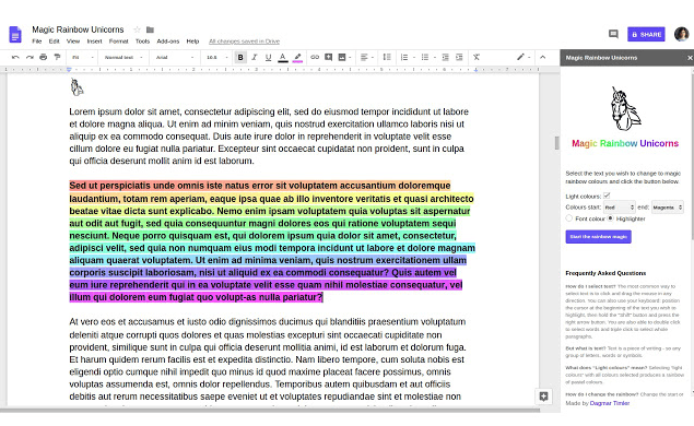 Les licornes arc-en-ciel magiques (vraiment) vous permettent de transformer votre texte ennuyeux en un véritable arc-en-ciel de couleurs. Il vous suffit de sélectionner la zone de texte que vous voulez transformer en arc-en-ciel (en arc-en-ciel?) et de choisir la gamme de couleurs de départ et d’arrivée. Une fois que vous avez fait cela, les licornes arc-en-ciel magiques (encore une fois, vraiment) convertiront automatiquement la couleur du texte en un magnifique arc-en-ciel.