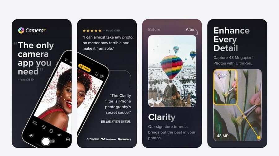 Camera+ 2, RAW çekim ve düzenleme, Apple Photos ile entegrasyon, Magic ML fotoğraf düzenleme, Gülümseme modu, Sabitleyici, çekim ön ayarları ve daha fazlasını sunuyor.